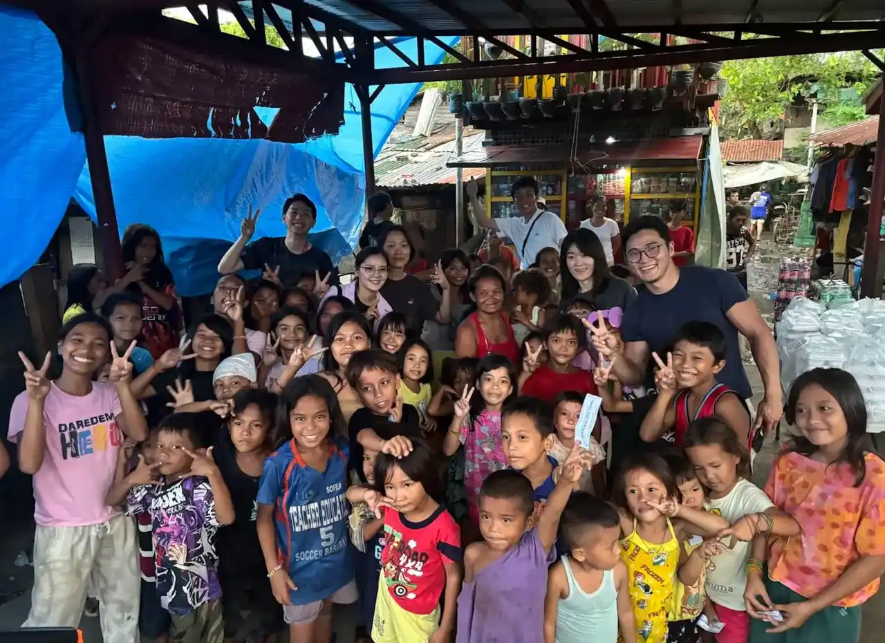 スタディーツアー参加者と貧困地域で暮らす子どもたちとの記念写真 |