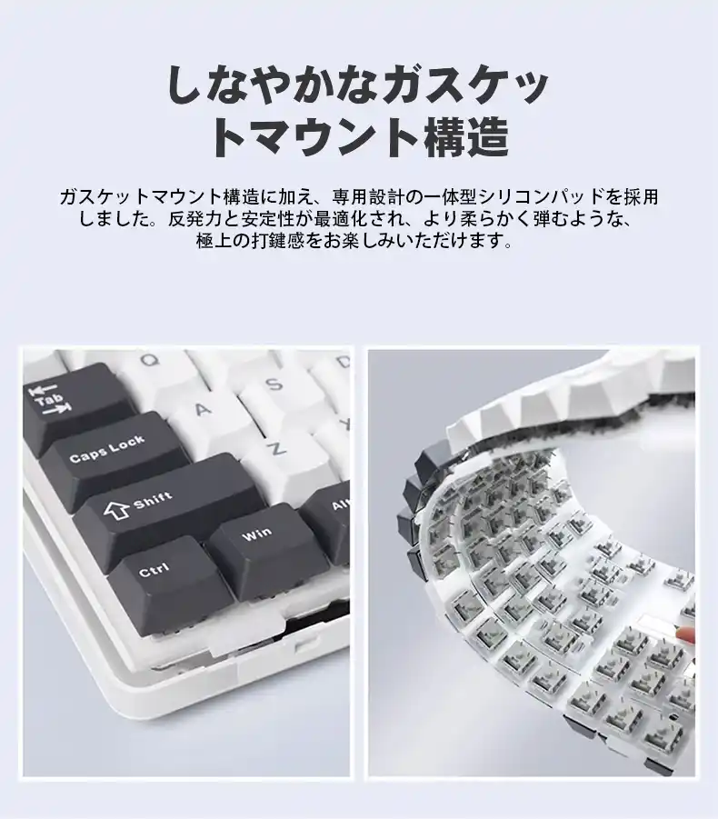 打鍵感を向上させるガスケット構造と多層静音設計 |