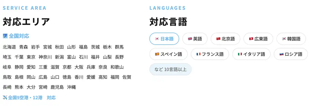 観光ガイドや体験通訳に加えて空港や駅の送迎アテンド、新幹線の切符受け渡しといった短時間業務まで対応可能です。ホテルや観光施設、イベント会場での多言語対応スタッフなど、複数枠のマッチングも行っています。 |