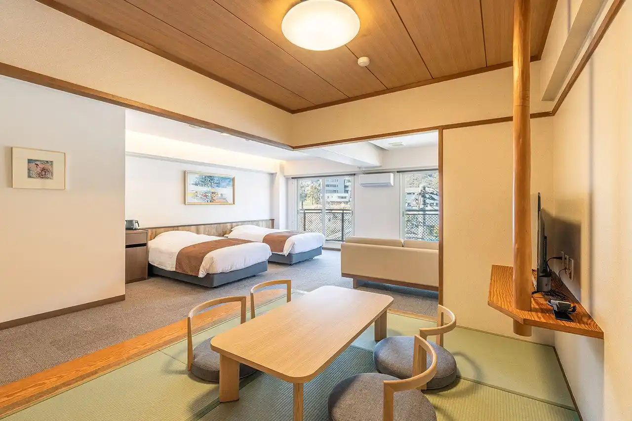 ご夫婦やカップルに最適なマウンテンビューのツインルームから、ご家族やグループでゆったりお過ごしいただける和洋室、機能的で心地よいコンパクトな和室まで、あらゆるご利用に応える全12タイプのゲストルームを取り揃えています。 |