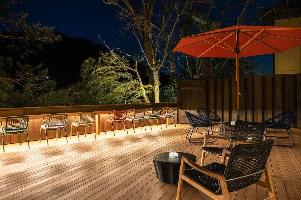 さらに、箱根の山並みを望むテラスラウンジでは、ドリンクをフリーフローでお楽しみいただけます。ロビーとつながる開放感あふれる空間は、ご滞在中のカフェスポットとしてもご利用いただけます。時間とともに移ろう景色のなか、街の喧騒を忘れてゆったりと時を過ごす、あなただけの『nehako』ステイをどうぞ。 |