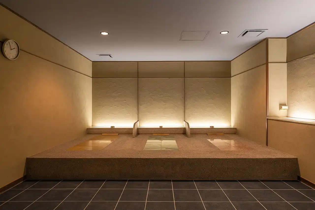 さらにゆっくり体をととのえたい方には、有料の岩盤浴もご用意しております。天然鉱石から出る遠赤外線でじんわりと体を温める岩盤浴は自律神経をととのえリラックス効果も抜群。北投石を使用したプレートによるマイナスイオン効果で、湯上がりはお肌もすべすべに。旅先での岩盤浴は、心身のリフレッシュに最適です。 |