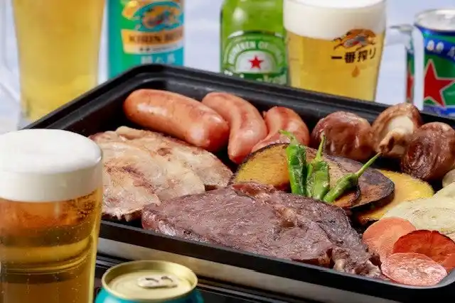 | メインは、牛肉や豚肉・ソーセージなど人気の肉類をしっかり楽しめる本格BBQスタイル。さらに串つきブラックタイガー、アワビ、北海道産ホタテといった海鮮メニューもラインアップし、幅広い世代でお楽しみいただけます。また、今年は全プランで「枝豆」「フライドポテト」の食べ放題を導入し、より満足度の高い内容にいたしました。 | |||||||||||||||||