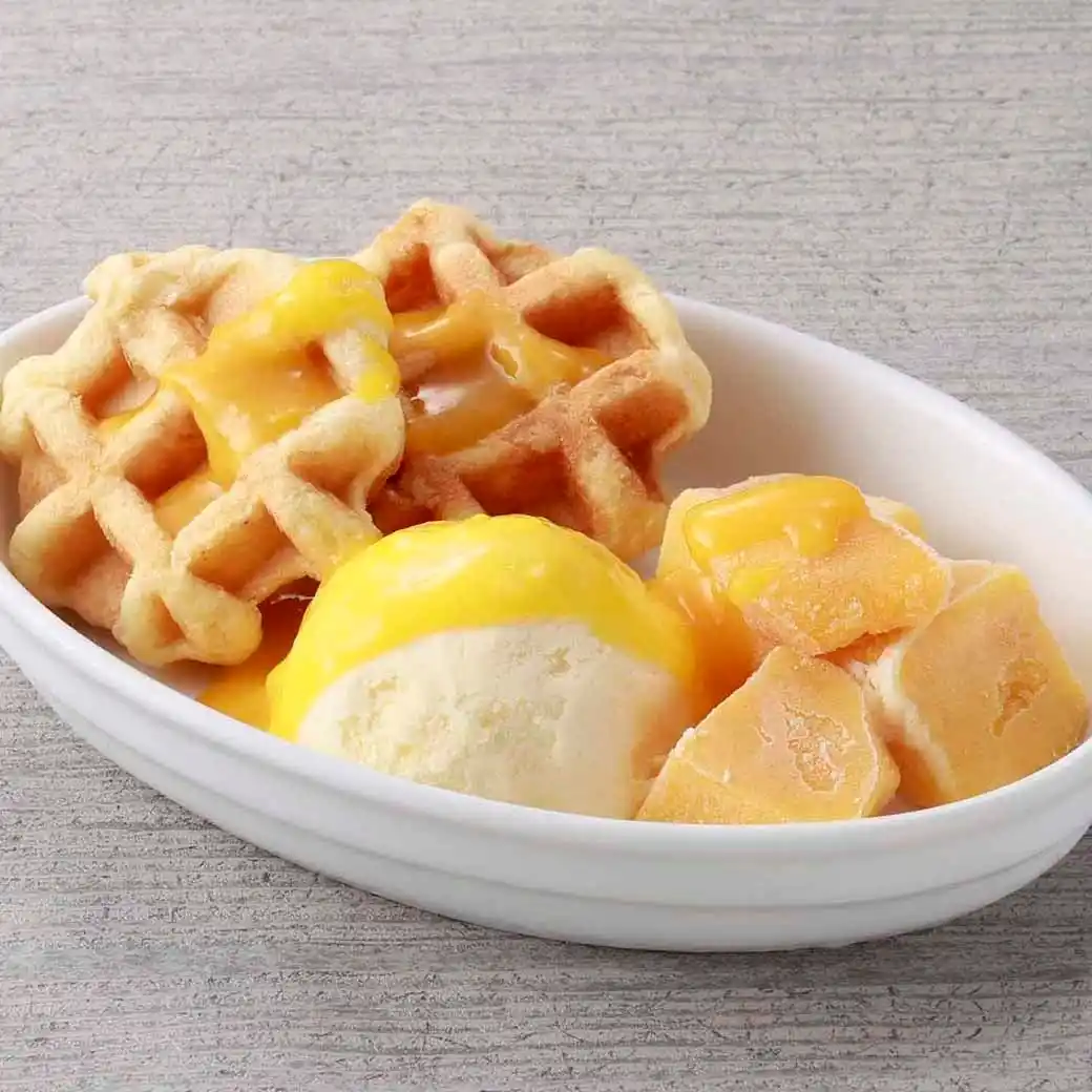 | ●ワッフル マンゴーとアイス添え 700円 | |||||||||||||||||