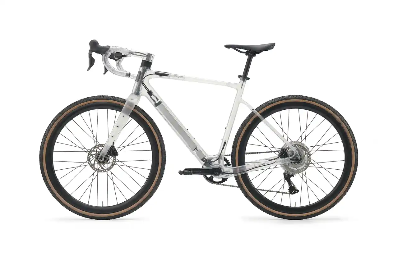 EX ONEは、この前提を見直しました。 まず設計したのは、ロードバイク・グラベルバイクとして理想的なフルカーボンフレームです。 |