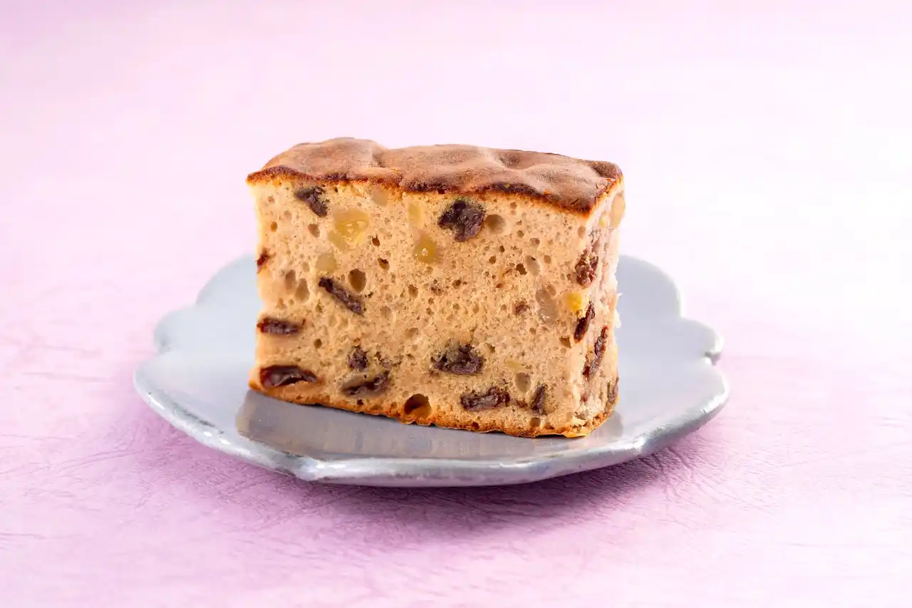 なめらかなこしあんをしのばせたカステラ生地に、ラムレーズンと、ほっくりと甘い栗をとじこめました。 |
