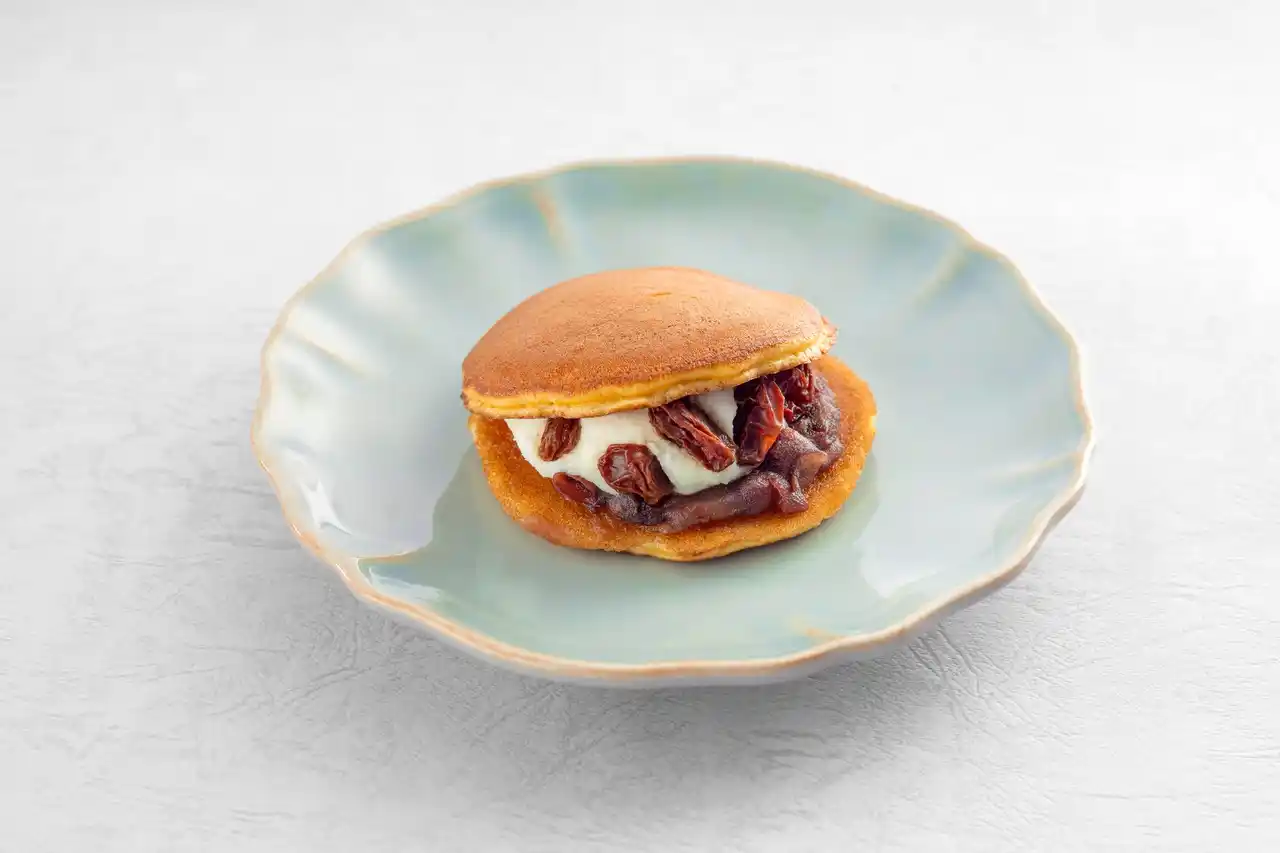 リコッタチーズのコクと、ラム酒漬けレーズンの香りがベストマッチ。しっとりとした生地で包んだ、和洋折衷のどら焼きです。 |