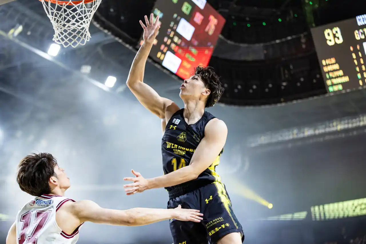 (B1初得点を決めた瞬間の心境について) 点差が開いたあの時間帯は、自分の出番があると思って準備していました。普段は外からのシュートが多いのですが、今日は相手がギャンブル気味に守っていたので、カッティングでゴール下へ行くチャンスを狙っていました。そこに運良くパスが来て得点に繋がりました。あのアリウープは狙っていましたし、祐眞さんなら必ず出してくれると信じていたので、実現できて本当に嬉しいです。 (初得点、そして初ダンクを決めた際のアリーナの雰囲気について) 今シーズンは自分にとって非常に厳しい挑戦になると覚悟してB1に飛び込みました。なかなか結果が出ない中で、こうして一つ形にできたことは本当に嬉しいです。ダンクの時は、耳が聞こえなくなるくらいの歓声が上がって、普段から応援してくださっているファンの皆さんの気持ちに応えられたのかなと感じて、喜びが爆発しました。やっとチームの12人のピースの一員になれたという実感が湧きましたね。 (2本目の得点、豪快なダンクの場面を振り返って) 1本目のあとに祐眞さんに「アリウープパスを出してほしい」と手を挙げて合図していたんですがその時は通りませんでした。2本目は完全に祐眞さんと目が合って、準備もできていたので「来るな」と思って飛びました。 (これまでの苦しい時期をどう乗り越えてきたか) 最初はワクワクしていましたが、これまでの環境とのギャップに苦しみ、もがき、正直孤独を感じる時期もありました。 でも「プロである以上、バスケットが好きである以上、やらないという選択肢はない」と自分に言い聞かせて、試合に出られない日もワークアウトやコンディション作りを100%欠かさずやってきました。1月に体調を崩したり怪我をしたりして落ち込みましたが、その時にチームメイトが本当に支えてくれて自分もこのままじゃダメだ、引っ張られてちゃダメだなと感じ、焦りながらですけど、追いついて今回決められたのでよかったです。 (ロッカーに戻った後、涙を流していたと聞いたが) ロッカーに戻った瞬間、抑え込んでいた感情が爆発してしまって、みんなの前で泣いてしまいました。でも、そんな時も祐眞さんはじめ、みんなが温かい言葉をかけてくれました。一人じゃないんだなと、心から実感した瞬間でした。 (これからどのようなプレーを見せていきたいか) 自分の身体能力を活かしたプレーはもちろん、まずはチームルールを徹底して遂行すること。その上で、出場時間が限られていても、コーさんのように一瞬で試合のリズムを変えられるような役割を担っていきたいです。 |