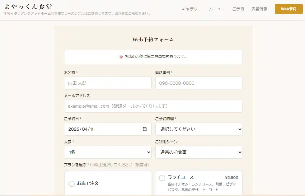 ・Web予約フォーム:24時間ネット予約受付。コース・人数・備考も一括管理 |