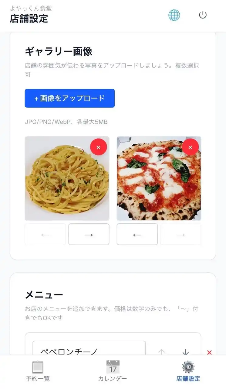 【設定を保存】で完了!何度でも修正可能です。新メニューを出した時、お店の写真をアップしたい時、いつでも追加できるし、削除できます。 |