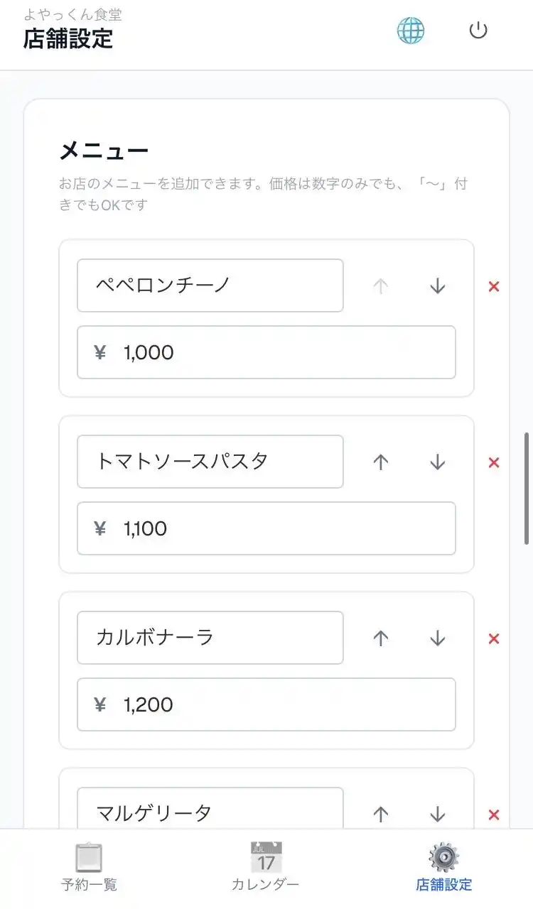 あなたのお店のメニューを入力。入力が面倒ならば先ほどの画像にメニュー写真をアップしてもOK! |