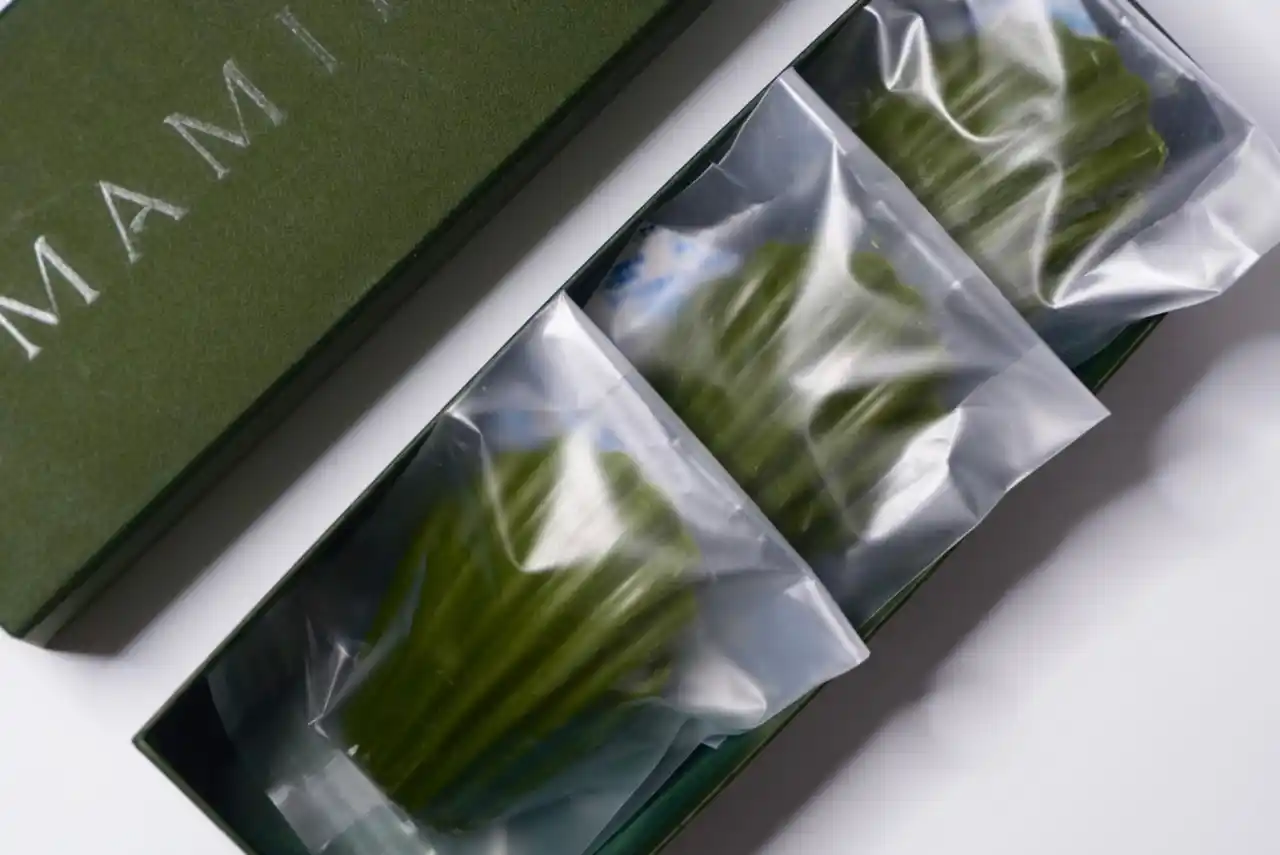 | 使用する抹茶は2gほどです。残りは新しい大福やマカロンに使用していただくか、お薄やラテ、他のデザートにかけてお召し上がりいただけます。 | ||||||||||||||