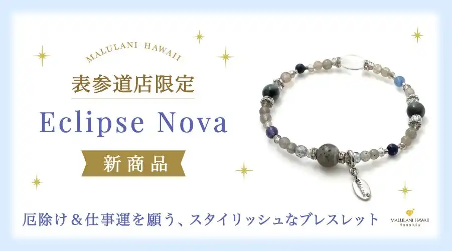 | ハワイ発の天然石アクセサリーブランド「Malulani Hawaii(マルラニハワイ)」表参道店限定で、夜空に輝く新星をイメージしたブレスレット「Eclipse Nova(エクリプス ノヴァ)」を発売いたしました。 | ||||||||||||||||||||||