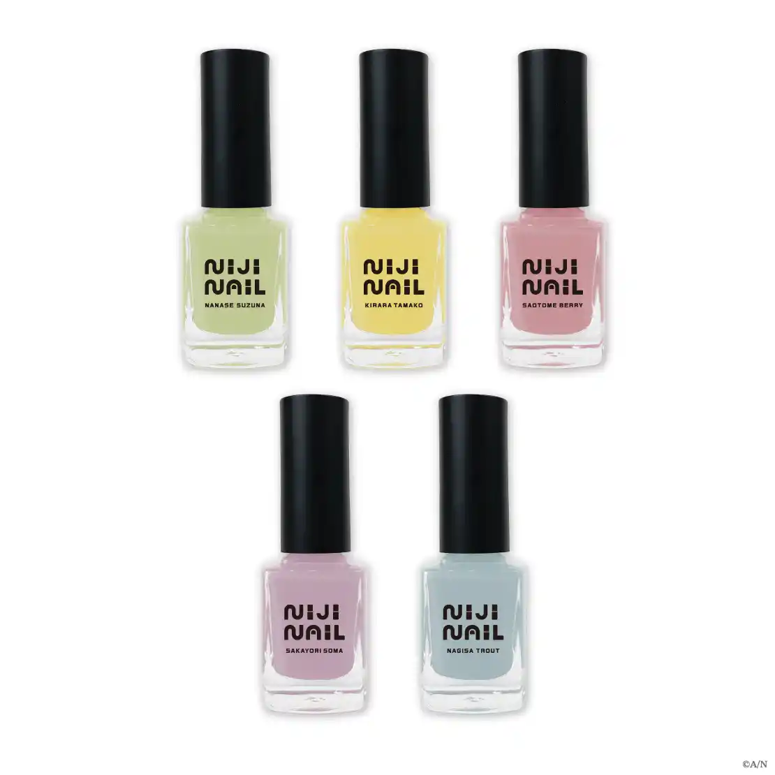 グッズラインナップは、ネイルポリッシュ、ネイルシール、ランダムアクリルキーホルダーの3種類。 |