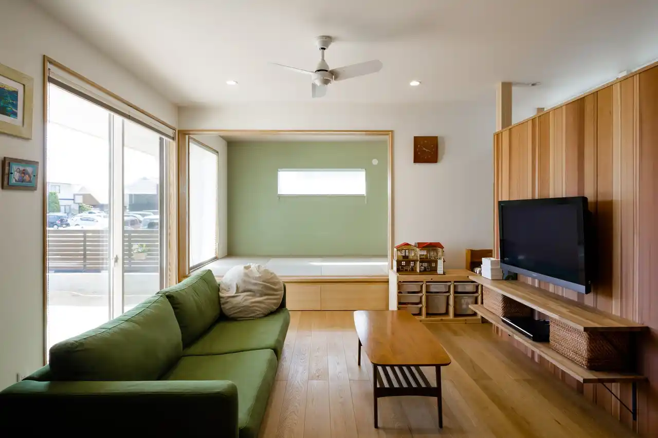 4. どこにいても家族のつながりを感じられる空間 キッチンに立ちながら、リビングでくつろぐ家族や、お庭で遊ぶお子様、タタミコーナーでお昼寝する様子まで、自然に目が届く間取りを採用しました。家族の気配をいつも感じられる、心のつながりを大切にした設計を目指しています。 |