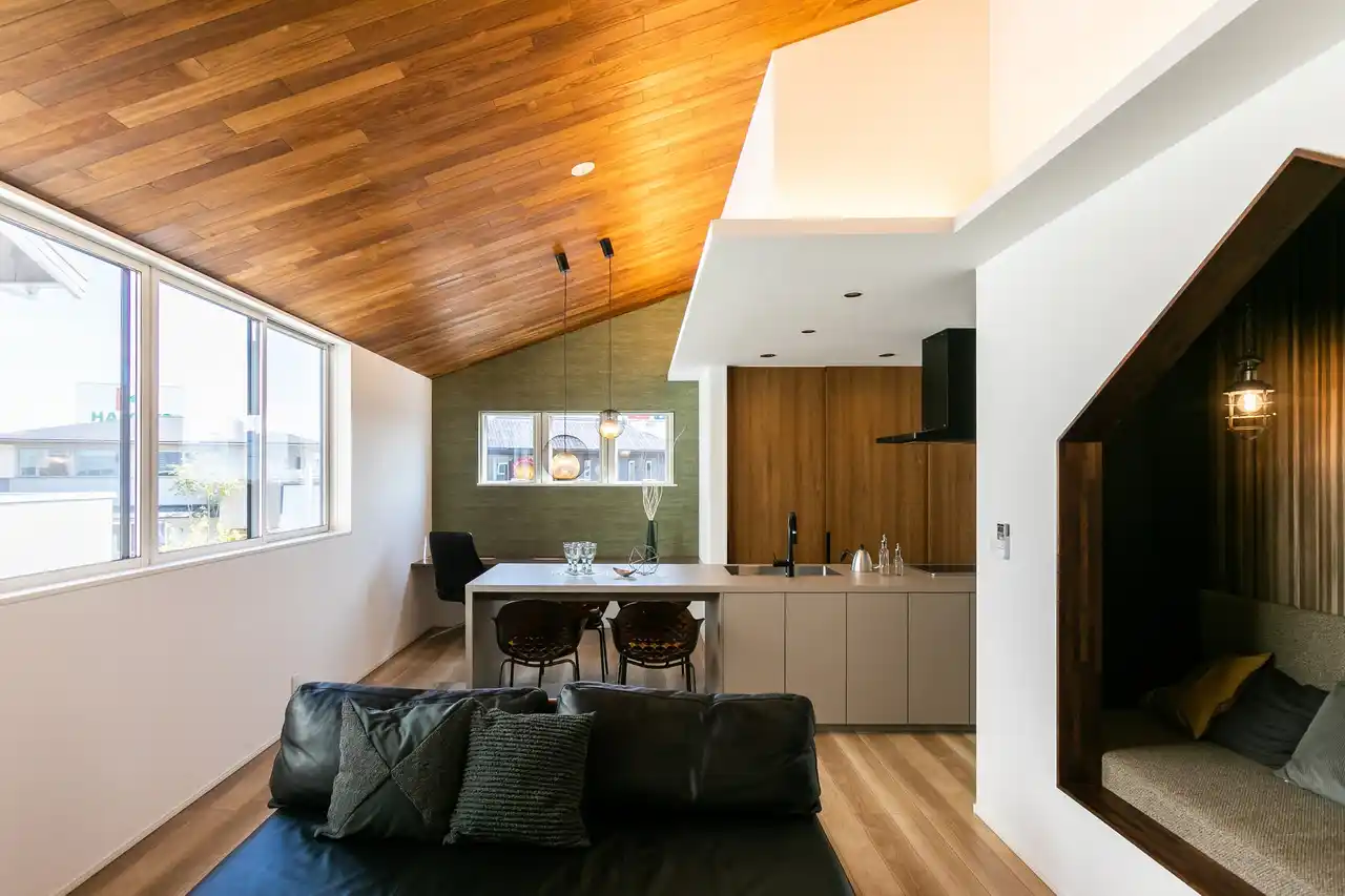 3. 共働き・子育て世帯を支える「究極の家事動線」 延床面積約38坪のリアルサイズの建物内には、キッチン横のパントリー、室内干し可能なランドリースペース、適材適所の収納計画など、家事の負担を軽減するアイデアを凝縮しました 。 |