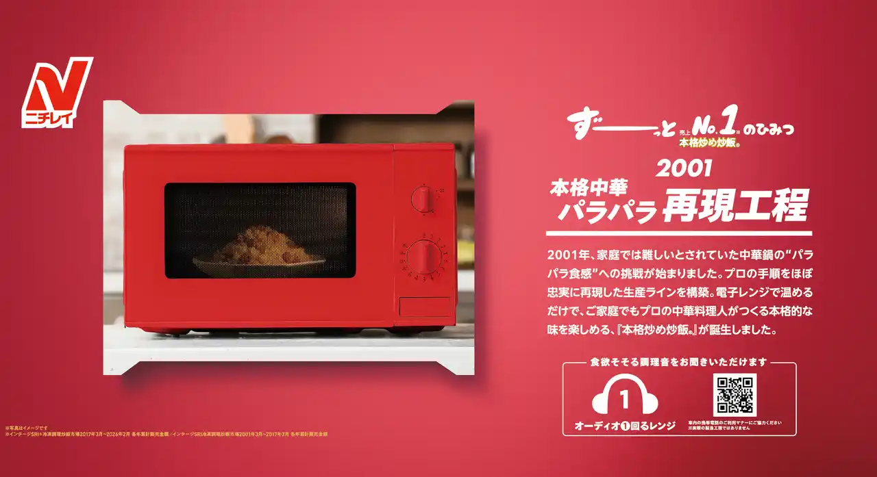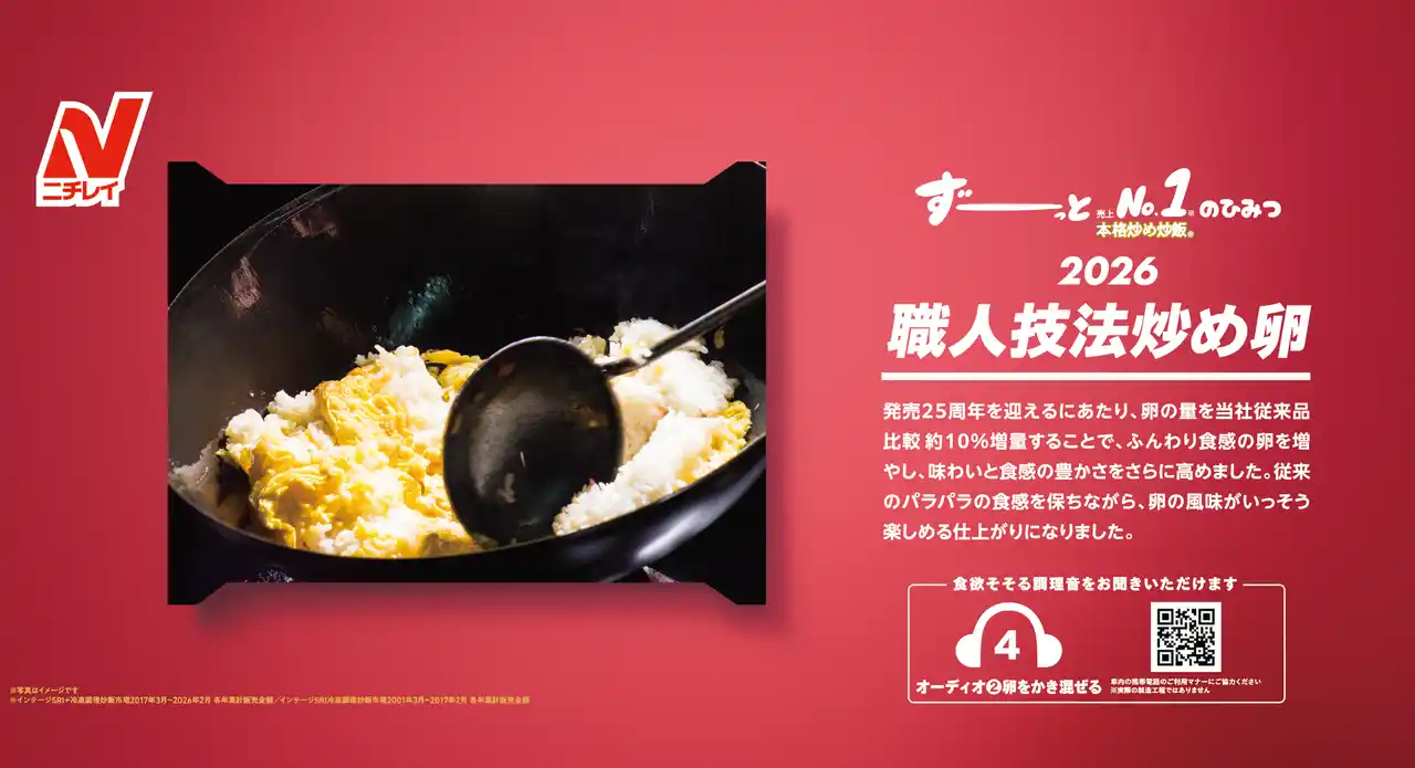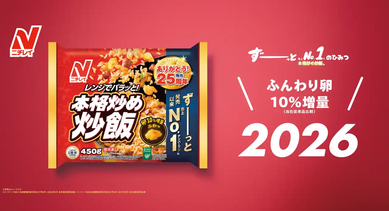 株式会社ニチレイフーズ(代表取締役社長:竹永雅彦、以下「ニチレイフーズ」)は、ニチレイ『本格炒め炒飯(R)』の発売25周年を記念し、2026年4月13日(月)より『本格炒め炒飯(R)』仕様の車両を、東京メトロ銀座線・丸ノ内線にて同時運行いたします。 |