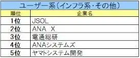 ◆ユーザー系(インフラ系・その他)ランキング◆ |