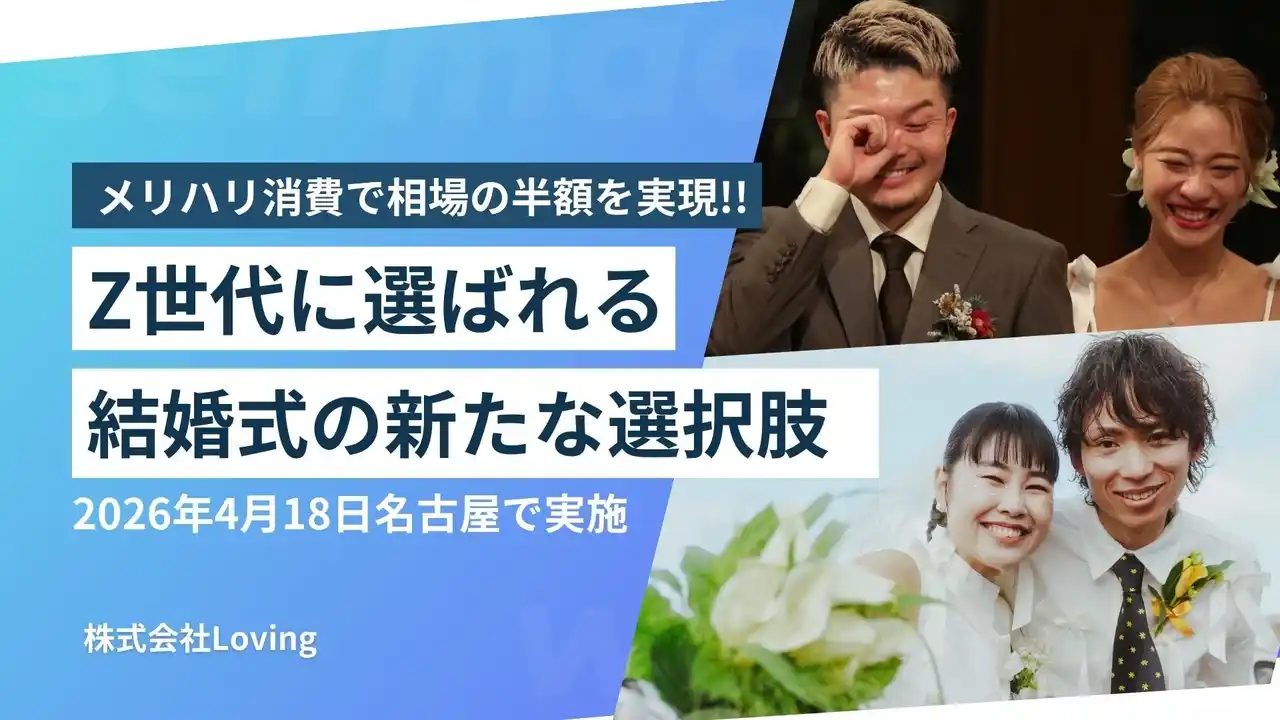 ウェディングコンサルティングサービス「NORN WEDDING」を展開する株式会社Loving(所在地:愛知県名古屋市、代表:鳥居紗歩、設立:2023年5月)は、止まらない物価高・インフレを背景に結婚式費用への不安が高まる中、コスパ(費用対効果)・メリハリ消費を重視するZ世代の価値観に正面から応えるセルフメイドウェディングを提供しています。フルオーダーメイドでありながら相場の半額を実現するという業界初の試みで、2026年4月18日(土)に名古屋にて施行を実施します。 |
