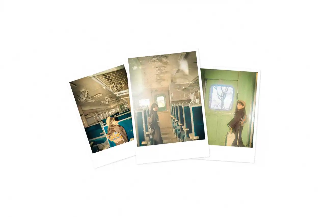 | レトロな駅舎を背景にしたノスタルジックなカット 広がる空と自然を活かした開放的なシーン “幸福”の看板と一緒に残す記念写真 | |||||||||