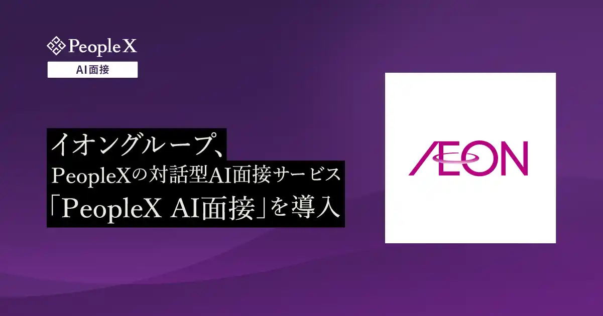 採用から活躍支援まで、AIで人事課題を解決する株式会社PeopleX(本社:東京都新宿区、代表取締役CEO:橘 大地、以下:当社)は、イオン株式会社(本社:千葉県千葉市、取締役 代表執行役社長:吉田 昭夫)に、当社が提供する対話型AI面接サービス「PeopleX AI面接」を導入いただいたことをお知らせいたします。今後、同社グループの複数企業における採用選考で本サービスをご活用いただきます。 |