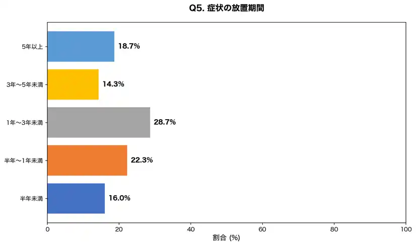| 【調査結果】半数以上が1年以上症状を放置、5年以上も18.7% | ||||||||||||||||||||||||||||||