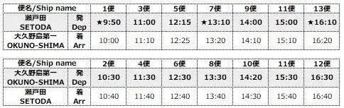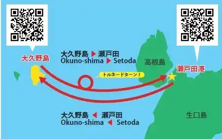●乗降場所:瀬戸田ビジター桟橋、大久野島第一桟橋 |