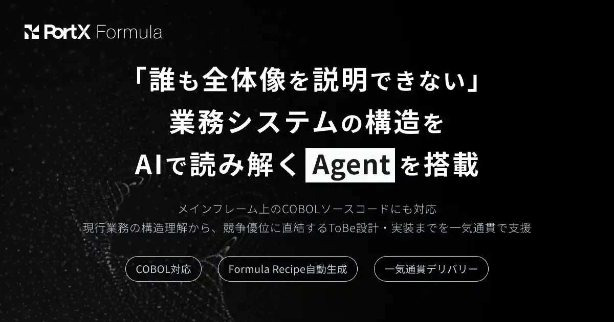 株式会社PortX(以下「PortX」)は、AI開発・運用基盤「Formula」の新機能として、既存システムのソースコードや設計書からシステムの業務構造を読み解き、変革の起点となる仕様情報を自動生成する「現行解析AI Agent」(以下「解析AI」)の提供を開始いたします。 |