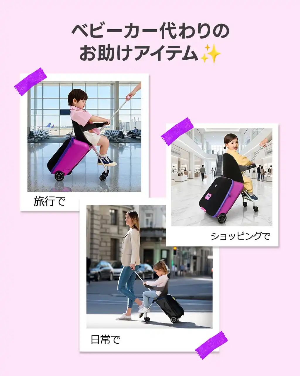 単なるキャリーケースではなく、「子どもが乗る乗用玩具」としての構造と安全性を前提に開発されている。 |
