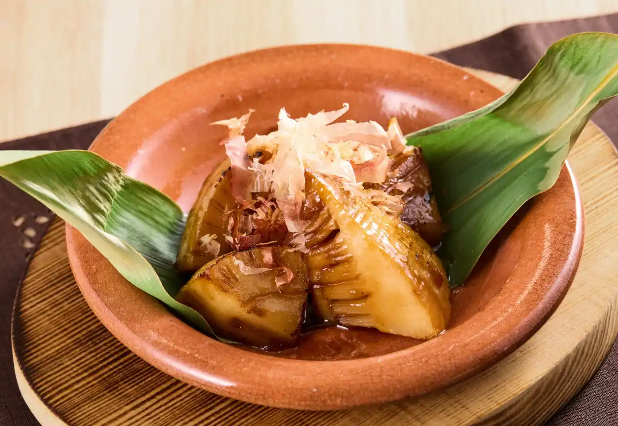 お出汁をたっぷり含んだ竹の子をステーキに!バターを加えた味わいが絶妙です。 |