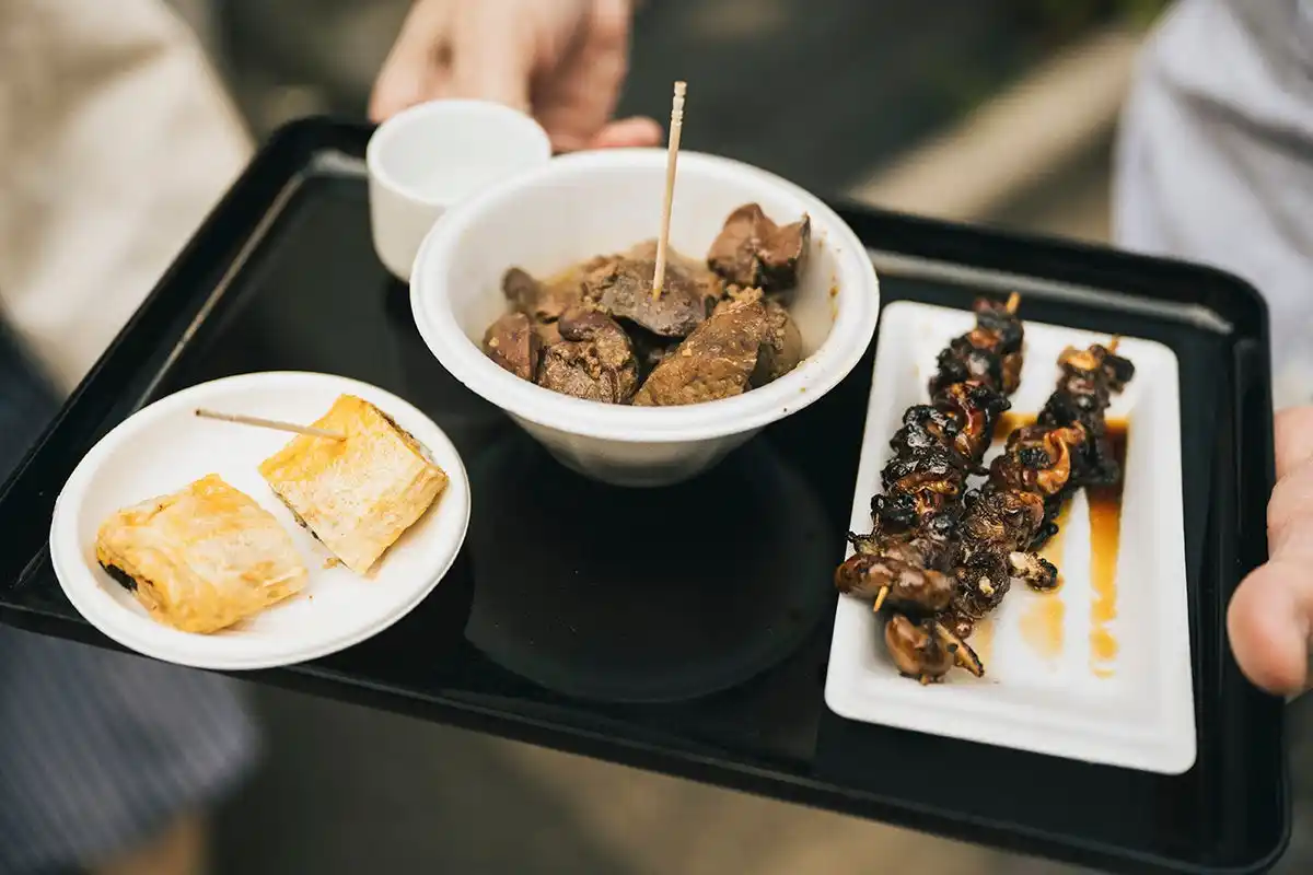 また、各飲食店では、それぞれ趣向を凝らしたフードメニューを用意しています。おつまみの主な価格帯として500円~1,000円程度(飲食店によってこの価格帯を超える場合もあり)となっています。 |