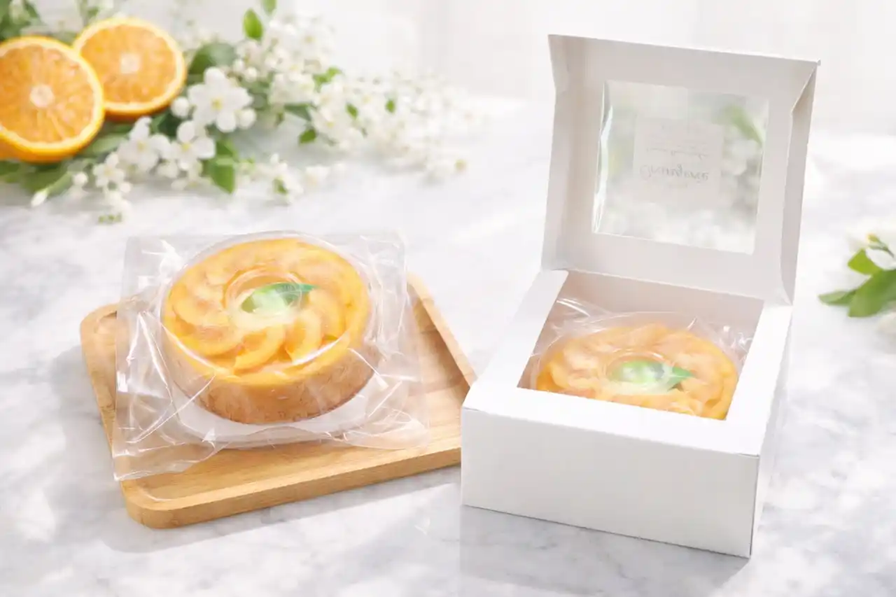 ケーキトレーにしっかりと収め、美味しさを閉じ込めて密封。 |