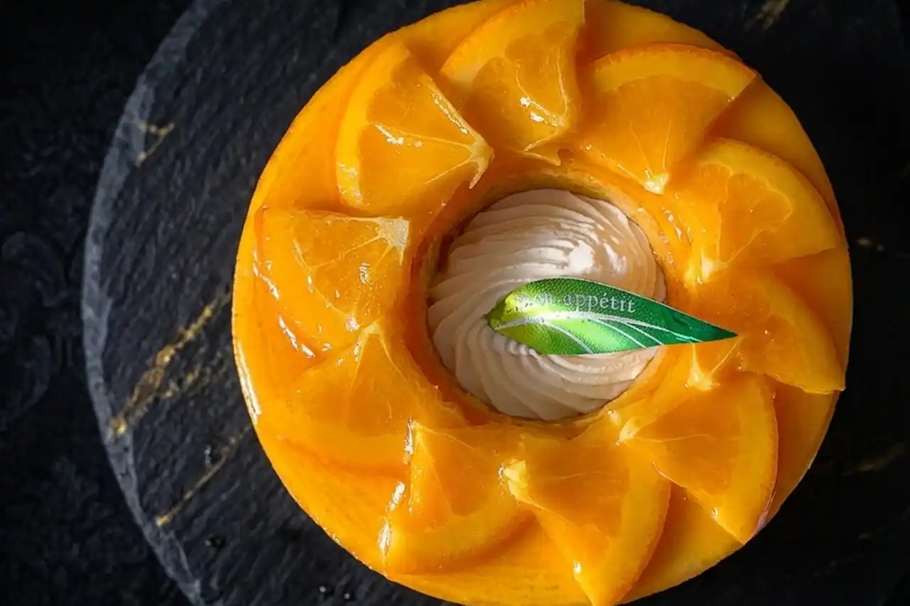 透き通るようにジューシーなオレンジの果肉とソースは、光を受けてきらめき、思わず見とれてしまうほどの美しさ。ひとつひとつ丁寧にカットされた断面は、まるで宝石のファセット(カット面)のように繊細で、透明感あふれる表情を見せてくれます。 |
