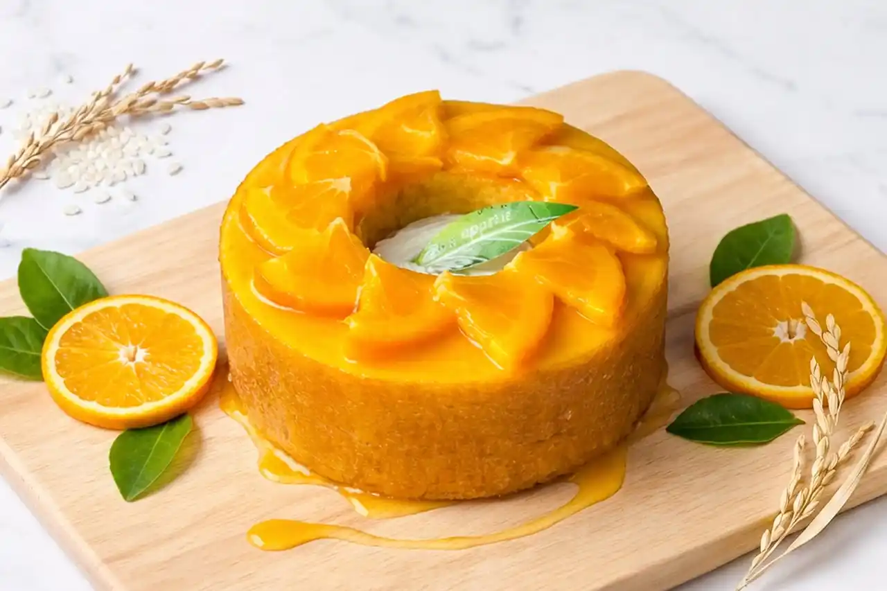 そこで育った米を極限まで細かく製粉した米粉は、粒子が非常にきめ細かく、驚くほどなめらかな口あたりに仕上がります。雑味のないみずみずしい生地だからこそ、オレンジの爽やかな風味をいっそう引き立てます。 |