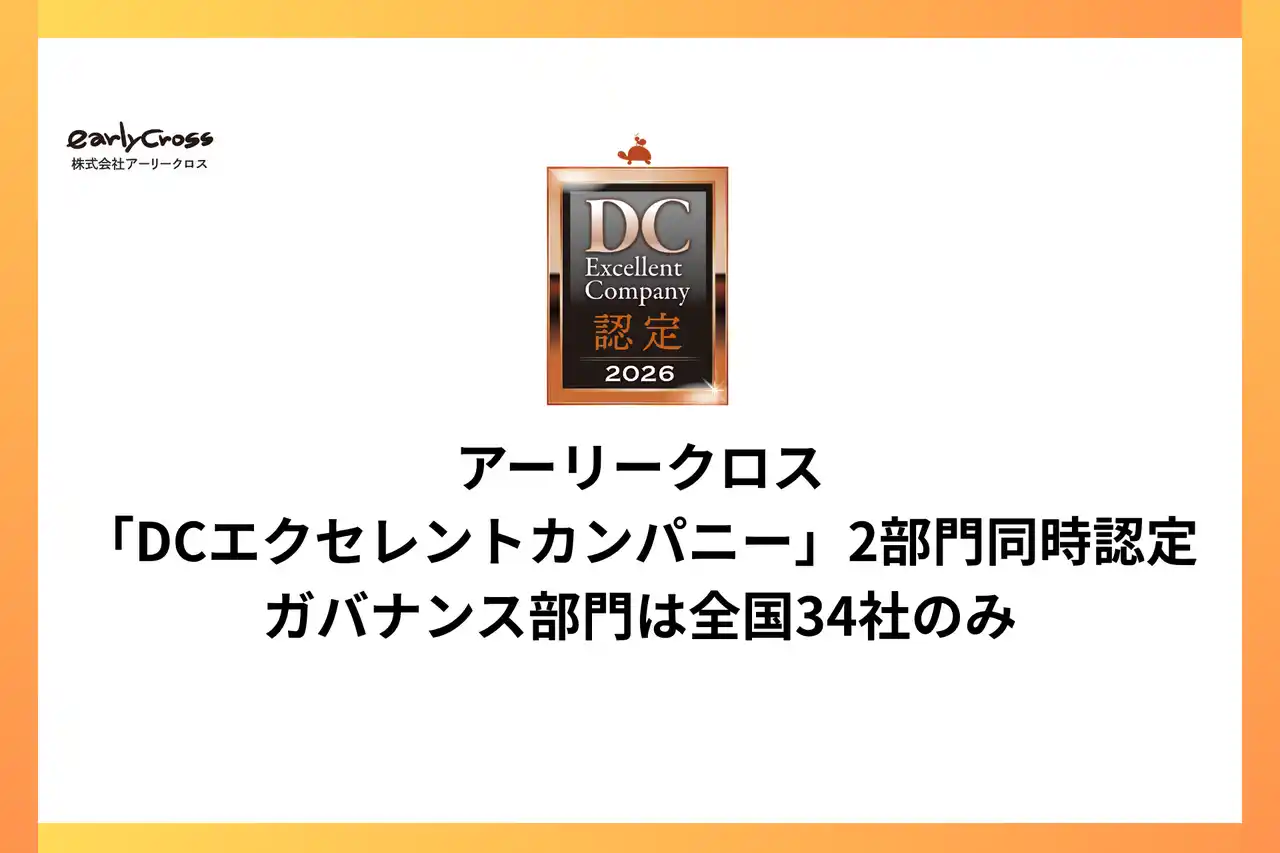 企業型DCの導入から金融教育までを支援する株式会社アーリークロス(本社:福岡県福岡市、代表取締役:花城正也、以下「アーリークロス」)は、NPO法人確定拠出年金教育協会(NPO法人DC・iDeCo協会)が主催する「2026年度 DCエクセレントカンパニー」において、継続教育部門およびガバナンス部門の2部門同時認定を取得しました。ガバナンス部門の認定企業は、全国でわずか34社です。 |