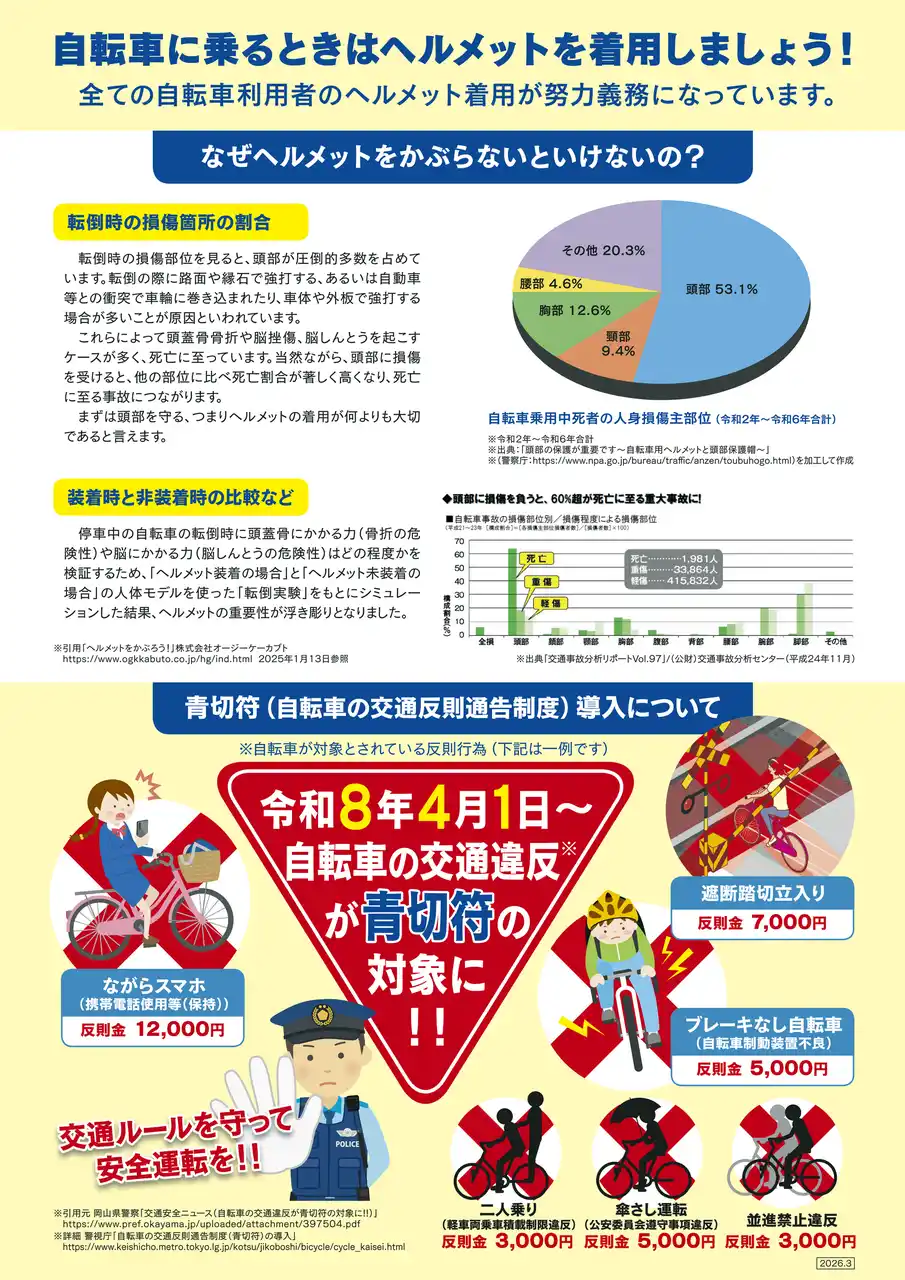 ※チラシ裏面では、2026 年 4 月に導入される自転車の青切符制度を紹介し、当協議会として自転車の交通ルール遵守を呼びかけます。 |