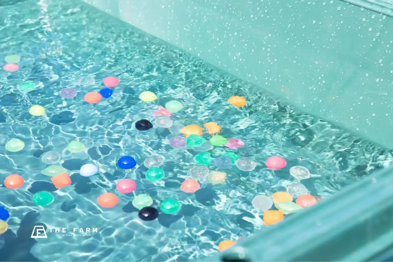 夜のTHE FARMでは、都会とは異なる静けさのなかで、焚き火を囲むゆったりとした時間が流れます。グランピングでは、薪割り&火おこし体験のあとに焚き火やスモア(焼きマシュマロ)を楽しめるほか、ゴールデンウィーク直前の期間には、ミニ縁日も開催します。スーパーボールすくい、ヨーヨー釣り、キックターゲットなど、子どもから大人まで楽しめる遊びが並び、春の夜にほどよい賑わいを添えます。静かに焚き火を眺める時間も、家族や仲間と縁日を楽しむ時間も、どちらも味わえるのが、この時期のTHE FARMならではの魅力です。 |