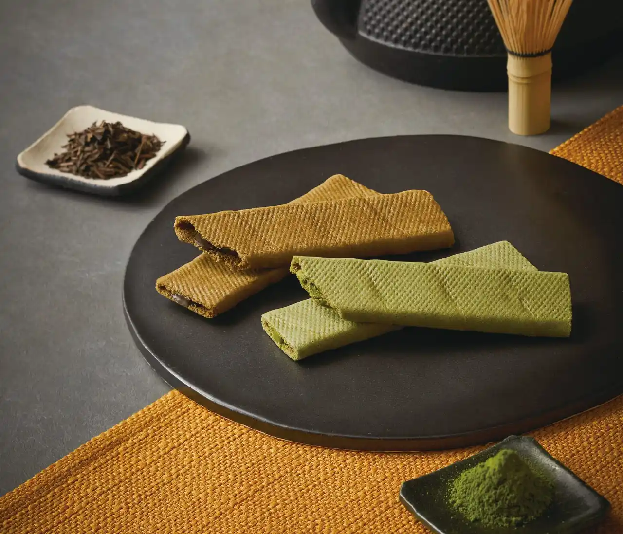 サクサクッと軽い食感のエコルセに抹茶・焙じ茶のフレーバー。和茶薫る米粉スイーツです。 |
