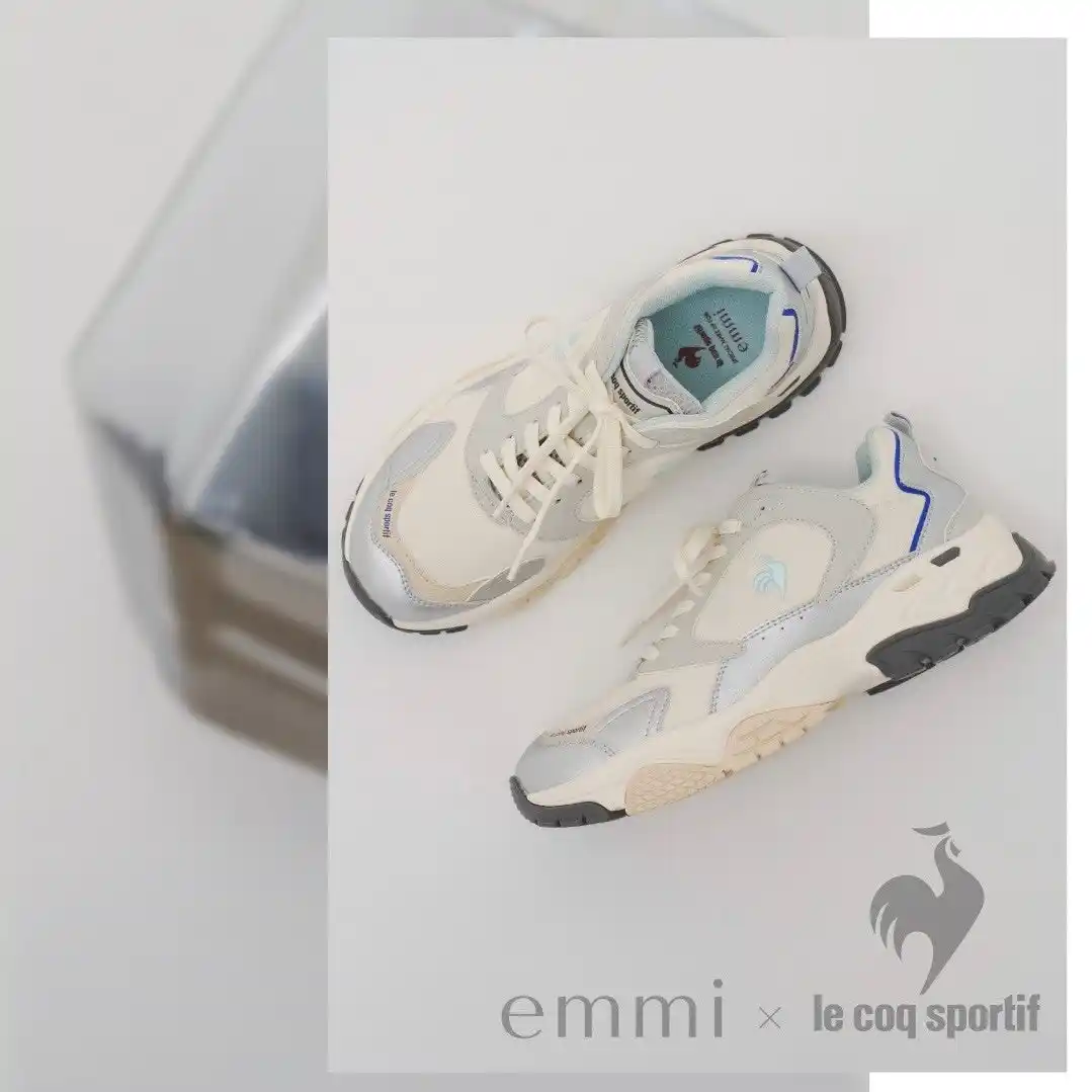 | 株式会社マッシュスタイルラボ(東京都千代田区/代表取締役社長 近藤広幸)が展開する、デイリーウェアおよびウェルネス&トレーニングウェアを手掛けるレディースブランド「emmi(エミ)」はフランス生まれのスポーツブランド「le coq sportif(ルコックスポルティフ)」とのコラボレーションシューズを4月10日(金)12:00よりオフィシャルオンラインストアおよびECデパートメントストア「USAGI ONLINE(ウサギオンライン)」で発売、同日よりemmi全国直営店舗で発売いたします。※無くなり次第終了となります。予めご了承ください。(emmi公式ホームページ: http://emmi.jp/ ) | |||||||||