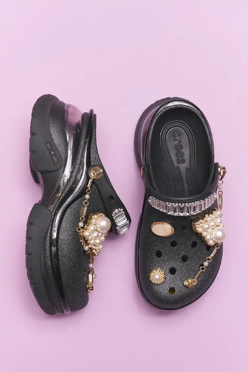 立体感のあるTPUバンドを重ねたミッドソールや、安定感のあるラグソール仕様により、デザイン性と機能性を両立。さらに、Jibbitz(TM)チャームに対応しており、アッパー26個+バックストラップ8個までカスタマイズが可能です。 |