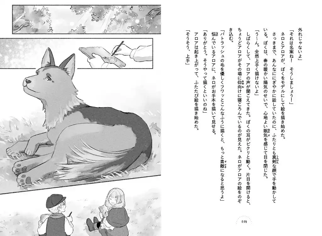 ▲ネロとジェハンおじいさんに助けられ、「ぼく」は元気を取り戻していく。 |
