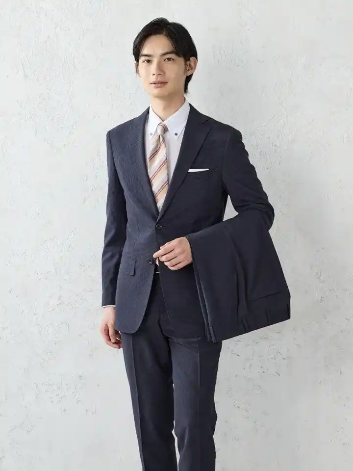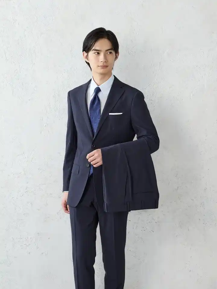| カラーは知的で爽やかなブルーとネイビーの2色を展開。ビジネスにおける信頼感を保ちながら、最新のテクノロジーで「着ている方が涼しい」と感じられるほどの快適さを追求しました。ハードに働くビジネスパーソンを、機能と品質の両面から強力にバックアップする、まさに春夏の決定版といえるビジネスウエアです。 | |||||||||