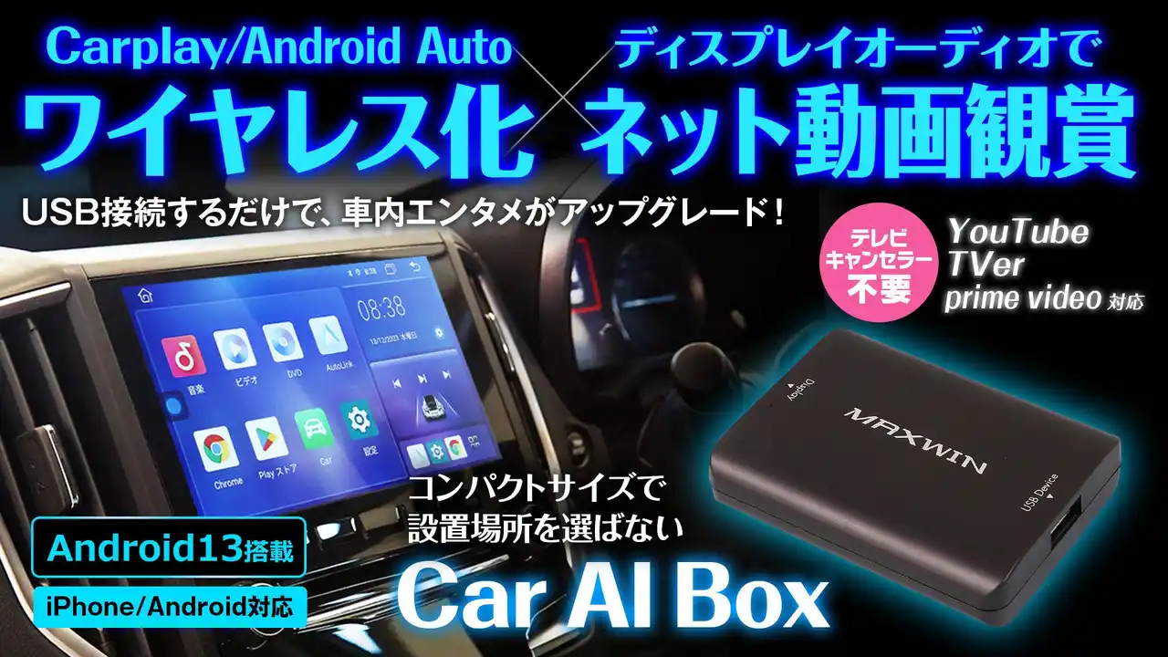 カー用品ブランドMAXWIN(運営:昌騰有限会社、所在地:大阪府泉大津市)は、純正ディスプレイオーディオのUSBポートに接続するだけで車内エンターテインメントを一変させるCar AI Box『DA-MED02』の発売を開始いたします。Android 13搭載・Google Play ストア対応により、YouTube・Netflix・Spotifyなどお好みのアプリを自由にインストール可能。さらにワイヤレスCarPlay/Android Auto対応、DVD/CD再生対応(別売ドライブ使用)と、車内エンタメの可能性を大きく広げる一台です。 |