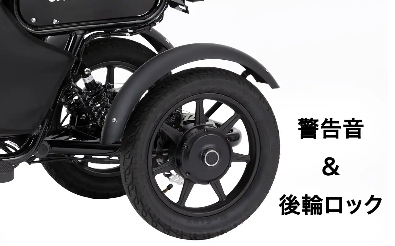 | さらに振動や揺れが継続した場合には、警告音とともに後輪モーターを自動ロック。 | |||
