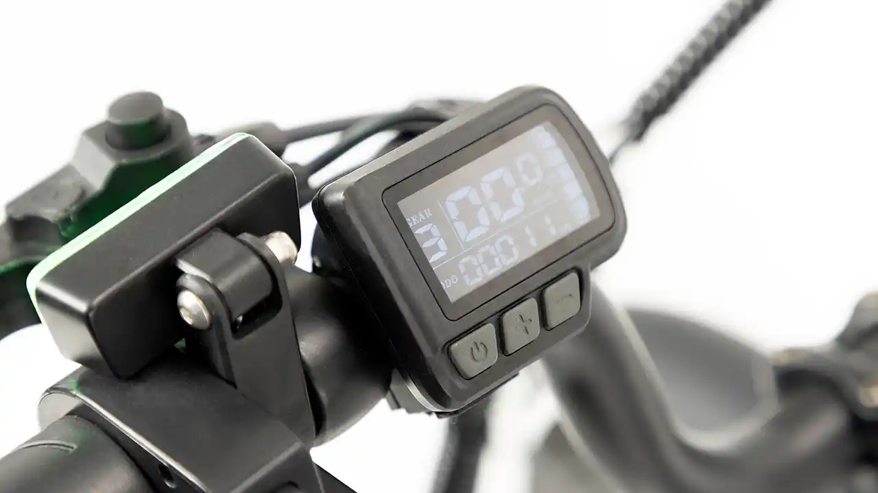 走行モードの切り替えは、車両を停止した状態でメーターのボタンを押すだけ。 速度メーターはデジタル表記で視認性も高く、簡単な操作で走行モードを変更することができます。 |