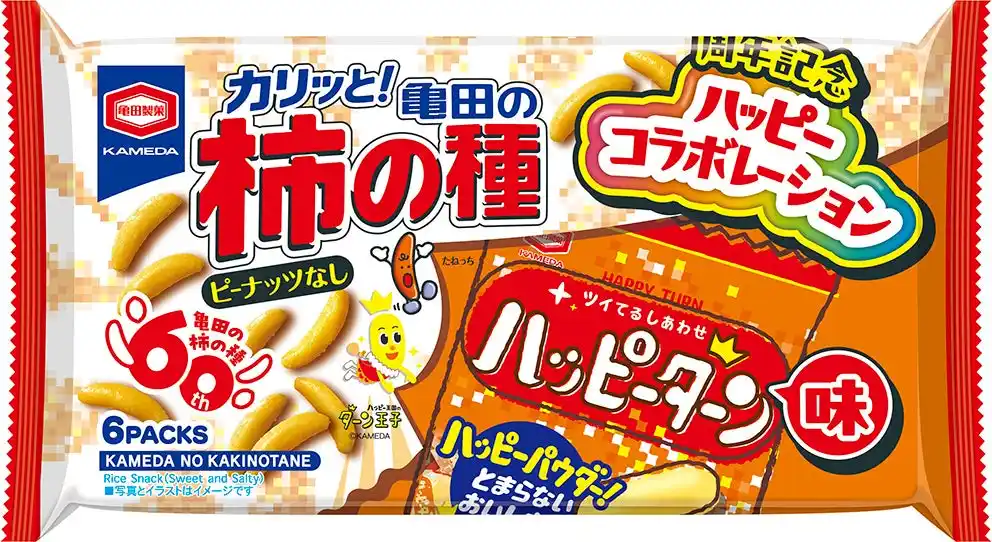 柿の種のカリッと軽快な食感が生み出す、リズミカルで止まらないおいしさと、“お客様に幸せが戻って来るように”という想いから生まれたハッピーターンの唯一無二のあまじょっぱさ。両ブランドの個性を生かしながら、今だけの特別なコラボレーションで、新しいおいしさを提案します。いつものおやつ時間はもちろん、仕事の合間や家飲みなど、これまでとは少し違う食シーンにも広がる“限定コラボ体験”で、毎日に寄り添うワクワクを生み出し続けていきます。W周年の節目を彩る今だけの特別企画として、これからの「亀田の柿の種」と「ハッピーターン」にぜひご期待ください。 |