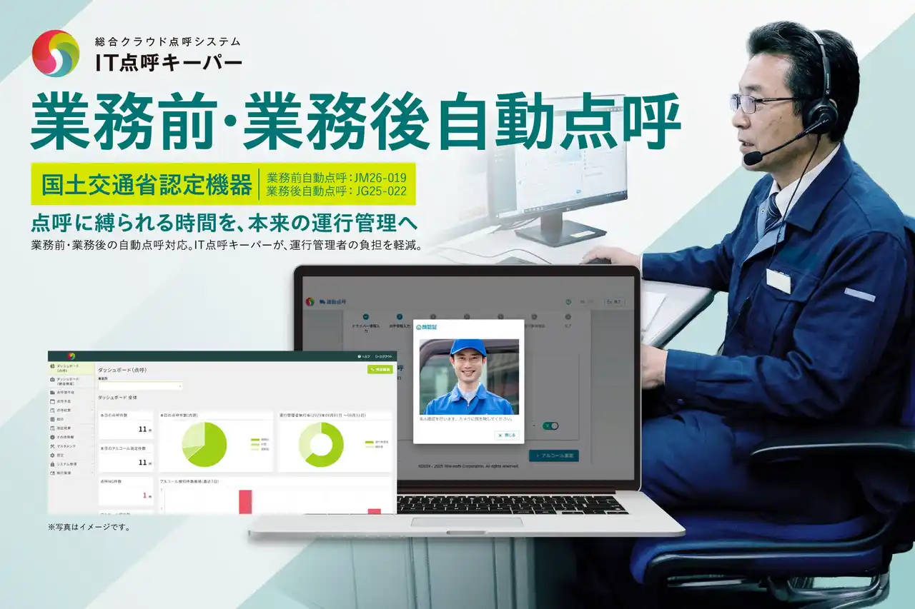 )が開発する貨物・旅客事業者向け総合クラウド点呼システム「IT点呼キーパー」の「業務前自動点呼」機能(認定番号:JM26-019)を2026年4月13日(月)より提供開始することをお知らせいたします。 |