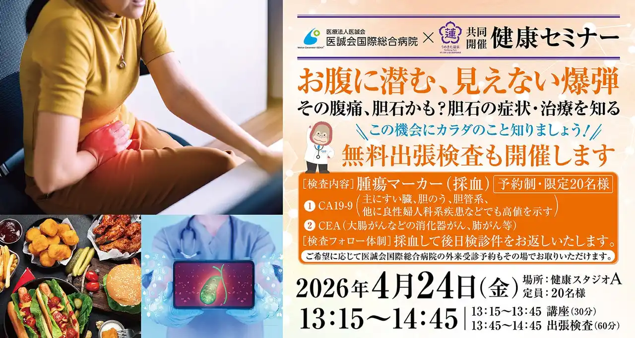 「うめきた温泉 蓮 Wellbeing Park」(総支配人:藤立 達哉、所在地:大阪市)は、2026年4月24日に、提携医療機関である医療法人医誠会(代表者:谷 幸治、本社:大阪市)の「医誠会国際総合病院」と共同で、第12回健康セミナーを開催することをお知らせします。 |