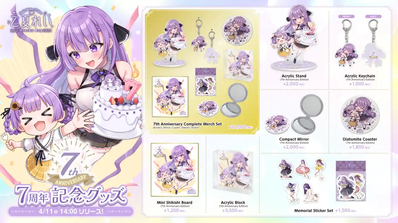クリエイターグッズの企画・製造・販売を支援する株式会社メディアリンクは、“みんなのおつかれを癒すママ系VTuber”として活動する乙夏れいの7周年を記念したグッズを、公式オンラインストア「乙夏れい OFFICIAL STORE」にて販売開始いたしました。 |