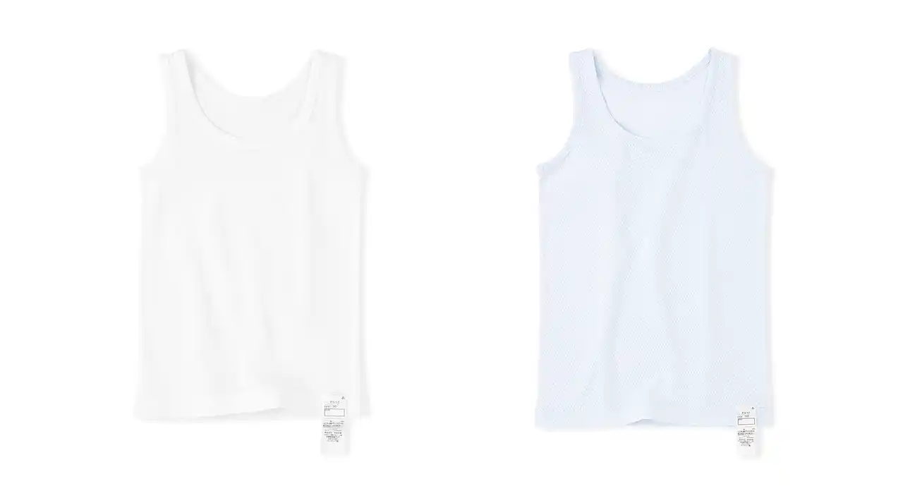通常の型よりネック部分をやや広めにすることで、Tシャツのネックから見えにくい仕様にしました。ビジネスシャツやTシャツの下に着やすく、猛暑でも役立ちます。カラーはベーシックな白・黒と、汚れが目立ちにくいライトグレーの3色です。綿はオーガニックコットン100%です。 |
